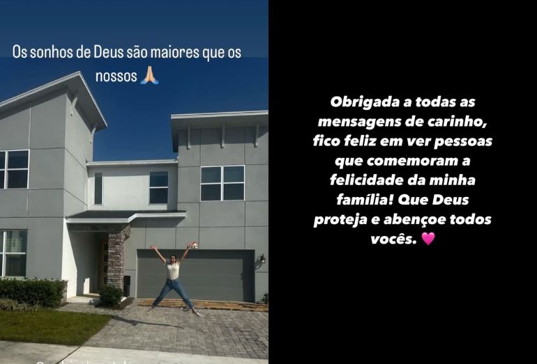 “Os sonhos de Deus são maiores que os nossos”, celebrou Ana Castela nos stories ao posar em frente à casa.